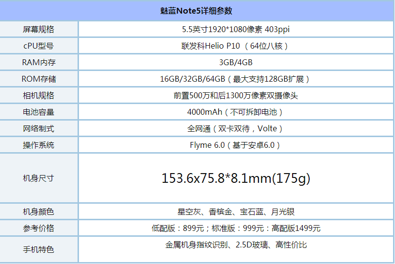 想要了解魅蓝Note5各版本区别并不难,一张参数表就能让大家秒懂,具体如下。