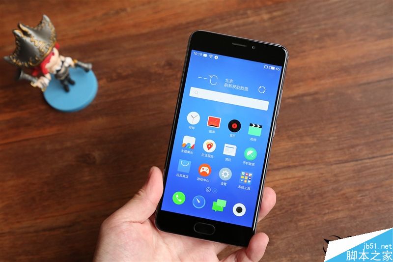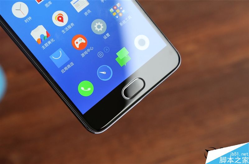 屏幕下方是魅族经典的腰圆形Home键,轻触返回,按下回到桌面,支持指纹识别、支付宝和微信支付功能。