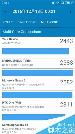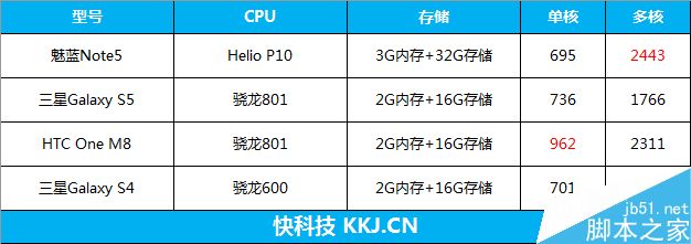 通过对比发现,魅蓝Note5所搭载的Helio P10在单核成绩方面较弱,而多核成绩的表现超越了骁龙801。