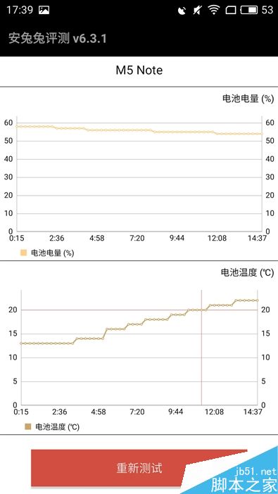 最后是温度测试,在CPU高负载运行的情况下,魅蓝Note5的最高温度在23℃左右,这个成绩无需多言,非常给力,日常使用中几乎感受不到手机内部的温度。