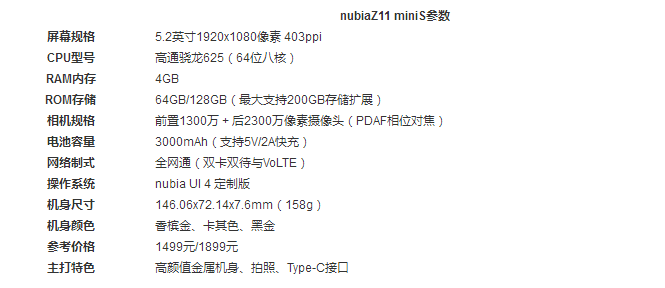 先来看看努比亚Z11 miniS配置参数,详情如下所示,参数党必看: