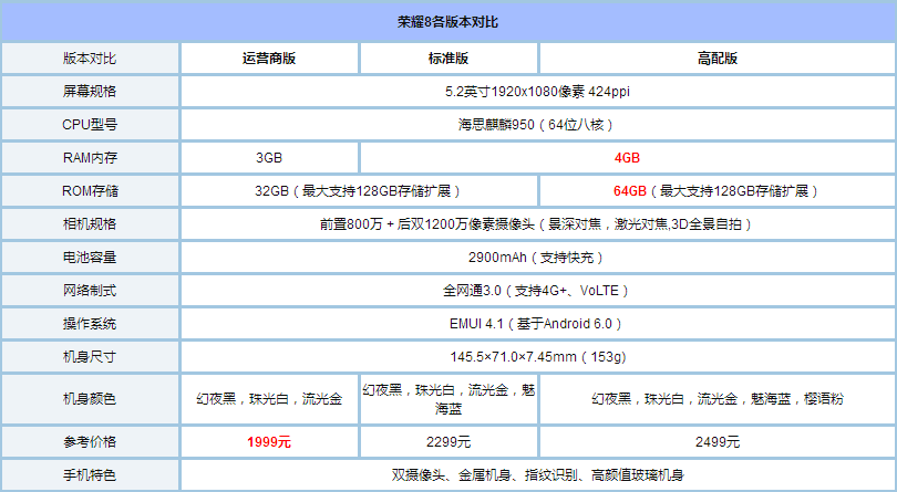 以上就是小编带来的荣耀8青春版和荣耀8区别对比评测,感谢大家的阅读,更多内容请关注脚本之家网站!