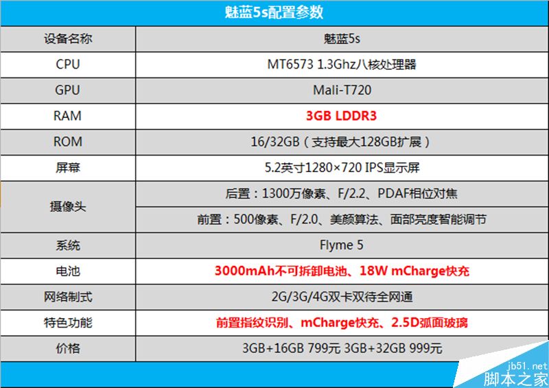 ↑↑↑魅蓝5s的配置参数