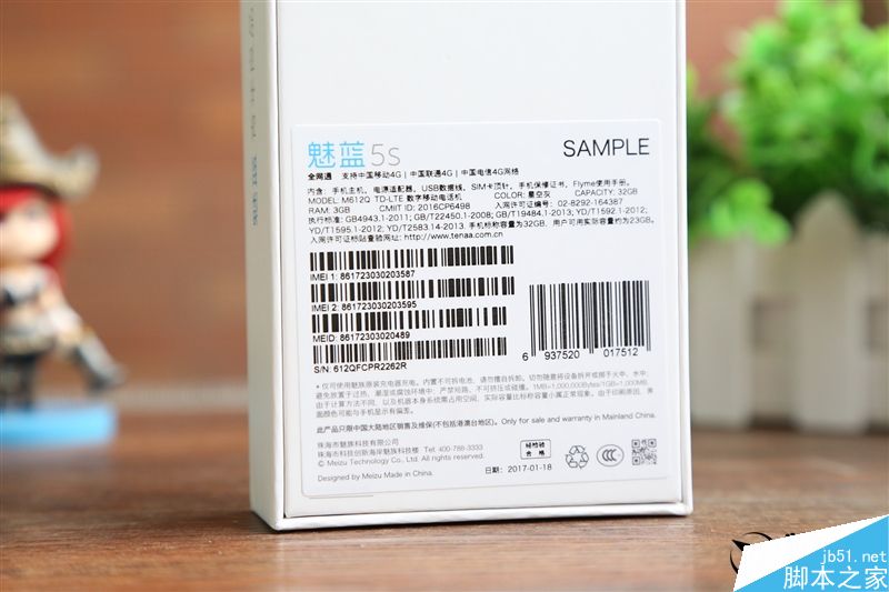 ↑↑↑包装的背面是一些简单的产品信息,包括手机的型号、电池容量、内存容量等等。