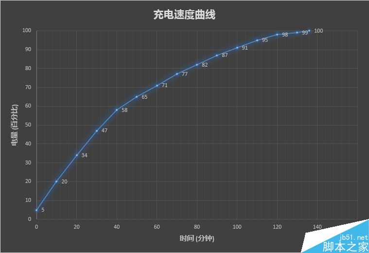 而作为对比,同价位的红米Note 4X标准版在前三十分钟的充电速度稍逊于魅蓝5s,但是在后面就被完全拉开了差距。可以看出,快充的加入对于整个手机的充电速度带来的提升非常明显。