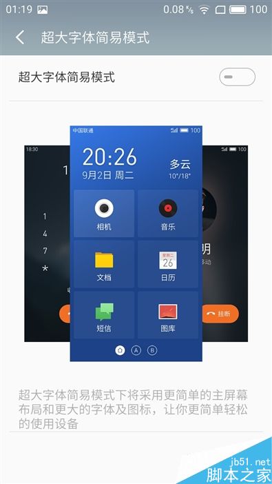 ↑↑↑悬浮球配合上flyme的传统强项mBack,在日常操作中的逻辑简单清晰,用户非常容易上手。超大字体简易模式的加入在一定程度上照顾到了视力上有缺陷者或者说老年用户的需求。
