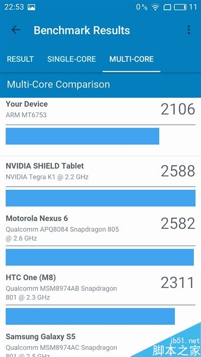 ↑↑↑GeekBench 4 CPU测试:左图为魅蓝5s的单核跑分成绩对比,右图为多核成绩对比,可以看到这个分数,虽然魅族对这颗处理器进行了不少打磨,但是依旧难以掩盖它性能上的短板。