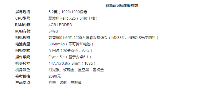 先来看看魅族pro6s的参数情况,详情如下所示: