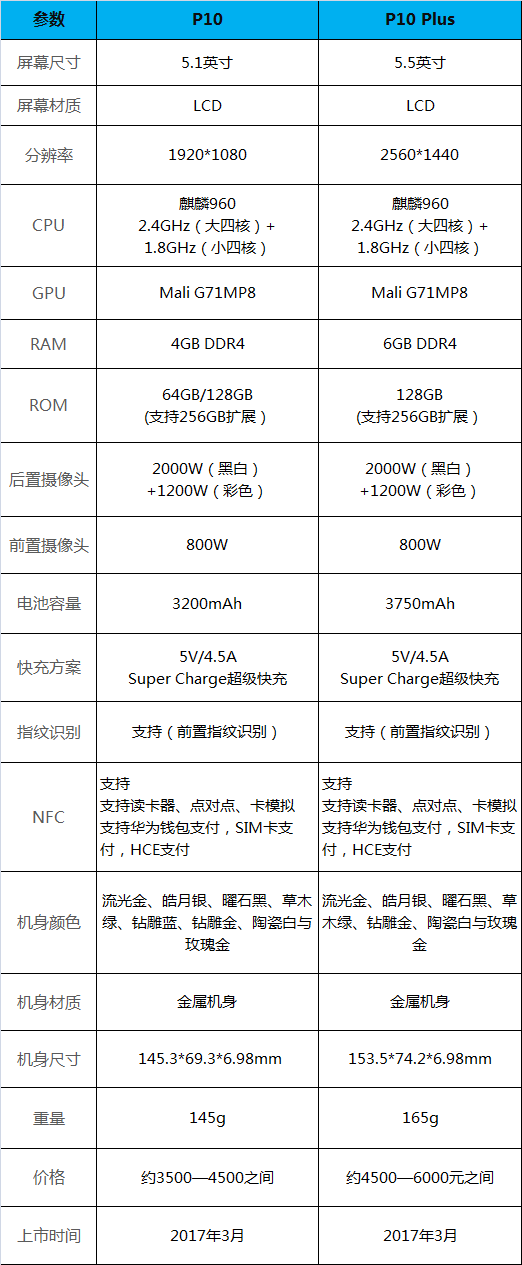 以上就是小编带来的一张图看懂华为P10和P10Plus的区别介绍,感谢大家的阅读,更多内容请关注脚本之家网站!