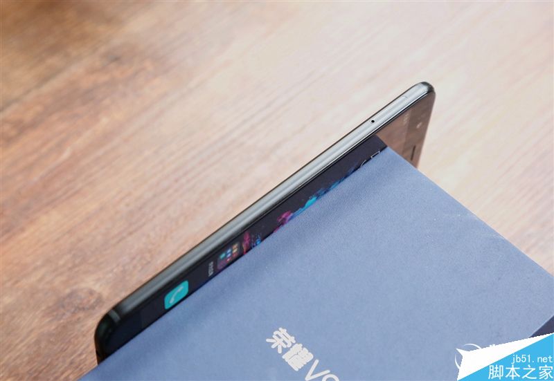 ↑↑↑荣耀V9顶部集成了红外发射模块,右边的小圆孔为降噪麦克。其机身厚度只有6.97mm,这么纤薄的机身内塞入了4000mAh的大电池,实属不易。