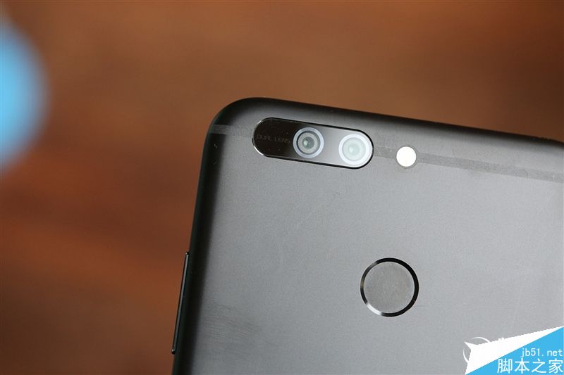 ↑↑↑荣耀V9延续了上一代黑白+彩色搭配的双摄像头方案,并配备了激光对焦和双色温闪光灯。荣耀V9的注塑天线带从中间穿过了摄像头模组和闪光灯,整机相机模块与机身背部高度持平,做工优秀。指纹识别模块采用凹陷设计,四周采用了亮面处理工艺。