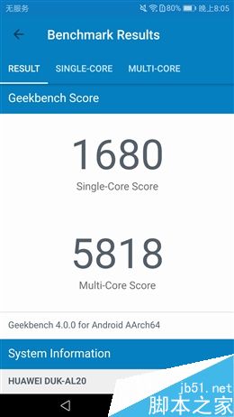 作为当家旗舰,荣耀V9的配置自然是当下旗舰水准。它搭载了麒麟960处理器,采用4*A73+4*A53的大小核方案,最高主频达到2.4GHz。集成Mali G71 MP8图像处理芯片和低功耗的微智核i6协处理器,最高配备了6GB大内存和128GB闪存。下面我们用测试工具对荣耀V9的性能进行测试。