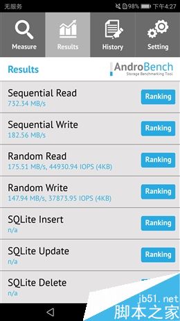 ↑↑↑AndroBench 5存储测试:左中右分别是荣耀V9、ZUK Edge和魅族PRO 6 Plus