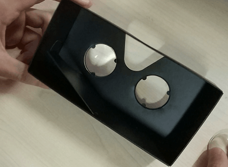 使用感受:同谷歌Cardboard一样,荣耀V9这种简单的纸盒VR眼镜自然谈不上佩戴、谈不上舒适,用的时候需要双手拿着盒子放在眼前,短时间用还可以,如果想要较长时间看视频或打游戏,请自备膏药。