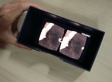 ↑↑↑打开荣耀V9的视频APP的VR频道,选择想观看的视频,将手机放入外包装盒里