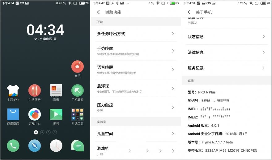 PRO 6 Plus 自然是自家的 Flyme 6 了,而且也放出测试固件修复了硬件低能的大 bug,系统流畅度以及应用游戏的加载速度都得到了提升,总算是达到旗舰机型应有的表现。当然,Flyme 自诞生起就保持的小清新风格也传承了下来,mTouch 这类的特色功能一个不落,魅族的家族式设计不仅仅只体现在外观上,系统也是辨识魅族的一个特征。