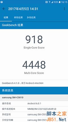 跑分方面,三星C5 Pro安兔兔评测得分为66891分,Geekbench 4单核心跑分为918、多核心跑分为4448,vivo X9安兔兔评测跑分为62951分,Geekbench 4单核心跑分为829,多核心跑分为4009。