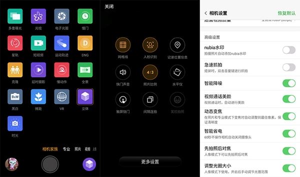 相较之下,虽然荣耀V9也提供了RAW(DNG)、流光快门(类光绘)、3D全景(类立体相机)、黑白相机、延时等模式,但综合来看体验仍然要逊于努比亚Z17mini的双摄系统。