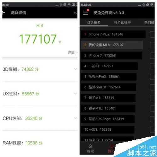 从安兔兔跑分来看,虽然成绩不像雷老板在PPT上展示的那么高,不过177107的表现也算是傲视群雄了。