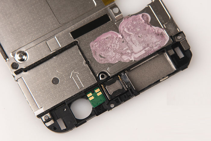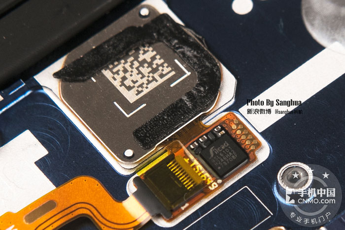 指纹识别模块被直接固定到后盖上,优势是完全防尘防水,但也给更换带来了麻烦。