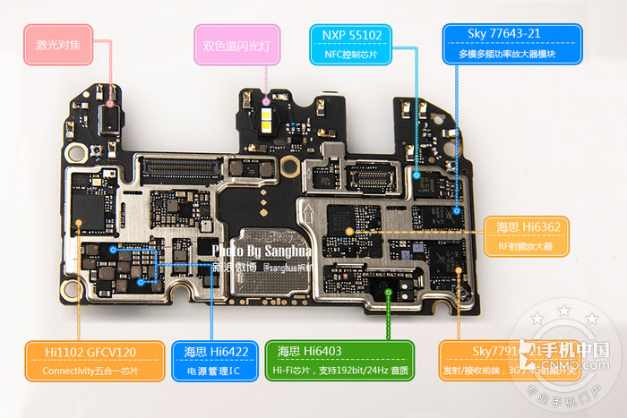 ⑦使用Hi6362+SKY射频放大器保证了通话的信号质量,实现全网通及3G、4G的速度。