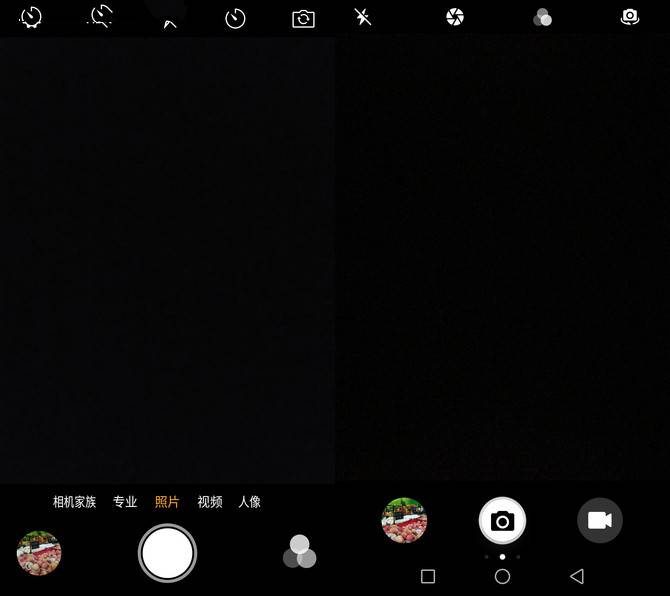 ▲拍照界面(左:努比亚Z17mini;右:荣耀8)