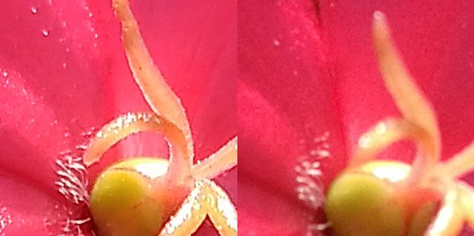 而在这组样张中,二者都表现出相当不错的色彩还原能力,其中努比亚Z17mini的色彩饱和度要稍高一些。放大后发现努比亚Z17mini在微距方面还是存在优势,花蕊的细节还原要比荣耀8好很多。