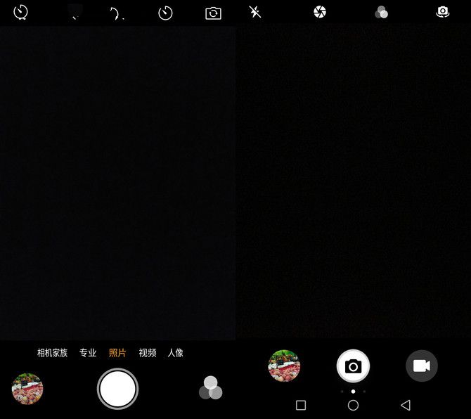 ▲拍照界面(左:努比亚Z17mini;右:荣耀8)