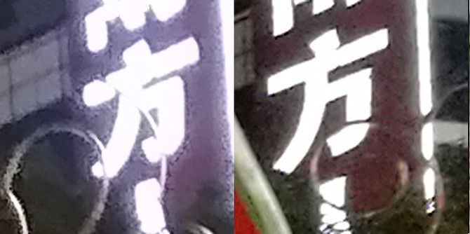 而在夜间大场景的样张对比中,二者的整体画面都相当不错,努比亚Z17mini的画面要更贴近人眼。但在细节图中努比亚Z17mini就出现了一些问题,可以看到努比亚Z17mini的抗眩光能力比起荣耀8仍旧有一些差距,出现略微过曝现象。