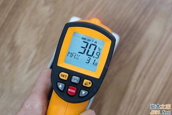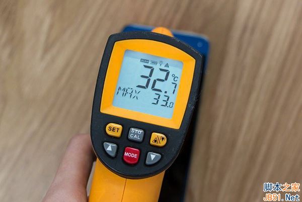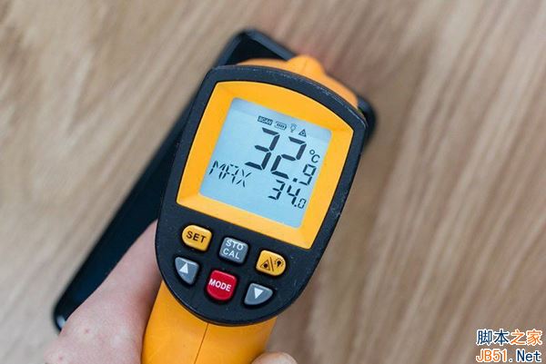 除了充电速度外,快充时的发热量也是笔者颇为关注的问题。通过激光测温可以看到,使用低压快充的一加3T在温度上极具优势;而使用高压快充的vivo Xplay6和小米6的温度则要稍高一些。