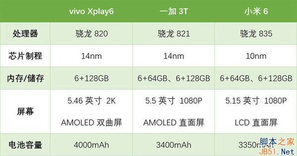 以上就是小编带来的小米6/一加3T/vivoXplay6的详细对比评测,感谢大家的阅读,更多内容请关注脚本之家网站。