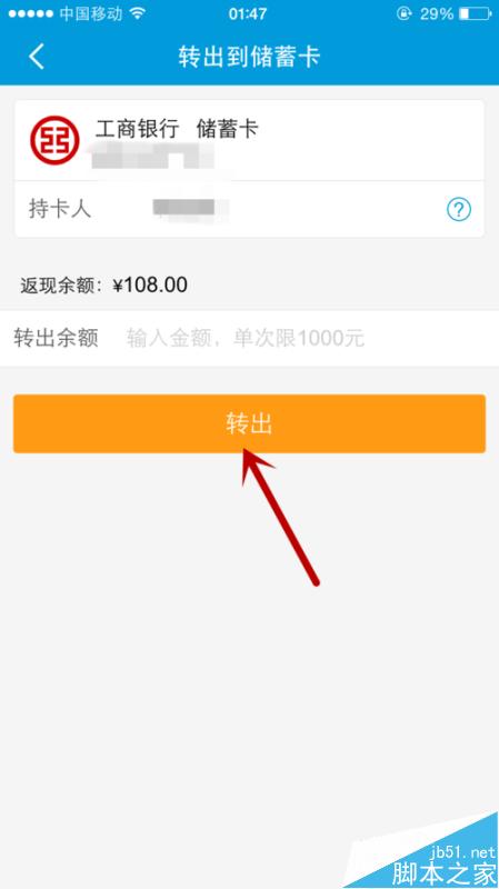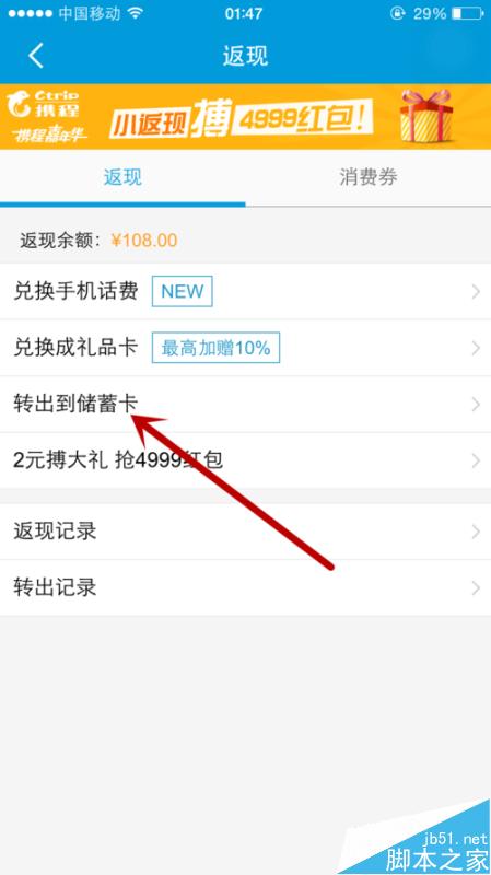 5、接着进入到返现界面,我们点击转出到储蓄卡,如图示;