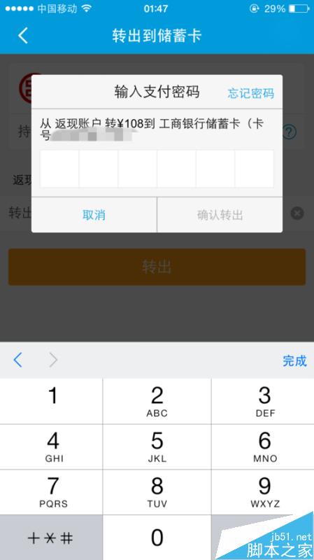 8、接着我们要输入携程支付的密码,这里小编之前也设置过了,输入后点击确认转出;