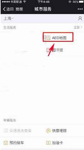 2)再点击【AED地图】,最后你就可以查看到附近的AED急救设备啦。(如下图)