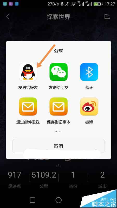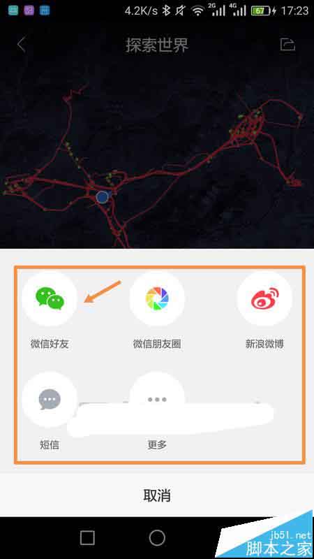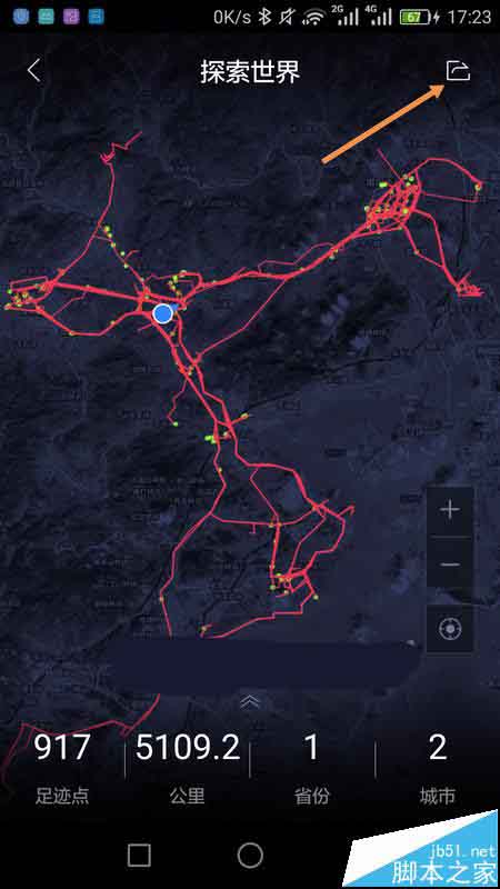 6、这样就进入 探索世界了,我分享足迹的话,可进行 右上角的分享设置,