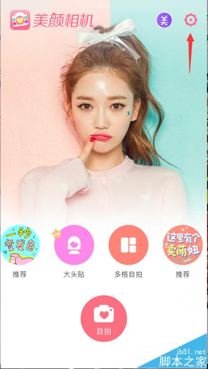 2、在美颜相机页面右上角中,点击“设置”标志进入。如图所示: