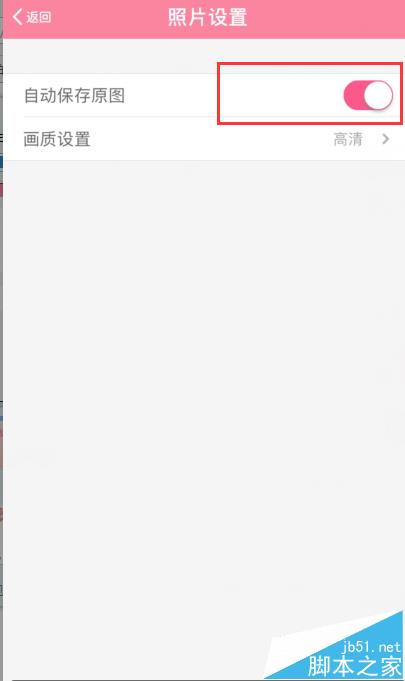 4、在照片设置页面中,可以直接看到“自动保存原图”是显示到白色的,则是表示处于关闭状态。如图所示: