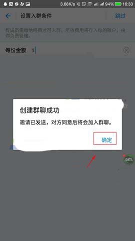 3)然后设置群收费金额后点击【确认,进入群】,接着再点击【确认】。(如下图)