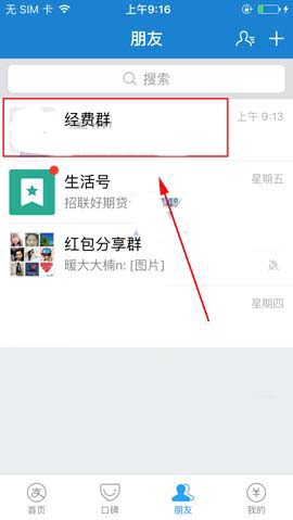 1)首先我们打开支付宝点击【朋友】,接着点击要删除的【群】。(如下图)