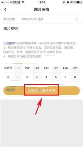 3)选择后我们即可看到页面上有个【赠片】的礼物图标,点击即可选择赠送好友。(如下图)