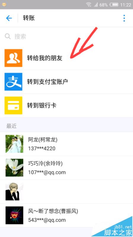 手机转帐就是这么简单,立刻就可以到帐 , 转账有两种方式,一种直接转账,有一种就是找到好友再点转账