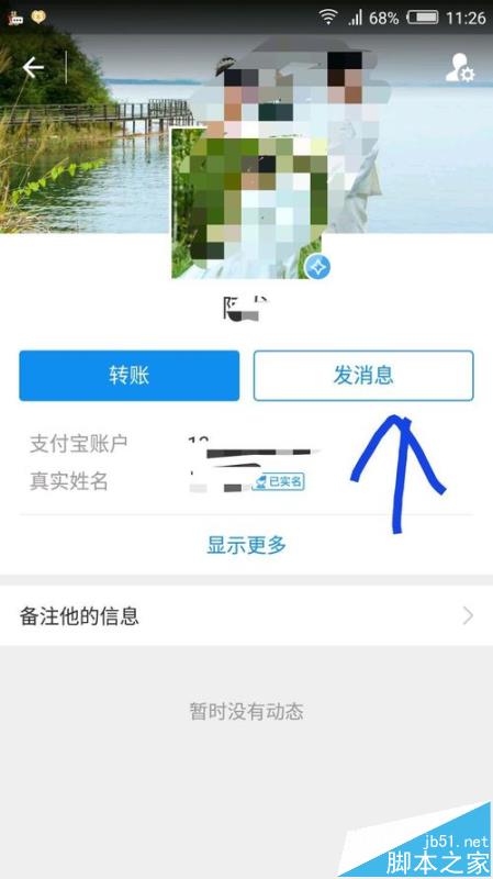 3、点开后,你可以点直接转账,或者发消息,在对话框那里也有转账的功能