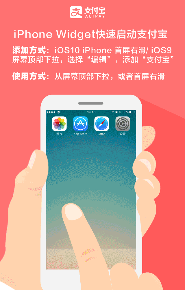 iphone widget快速启动“支付宝。”