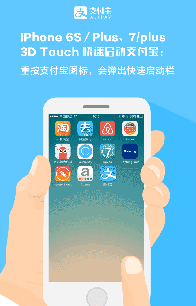 iphone 6s/plus,7/plus3D Touch 快速启动“支付宝”