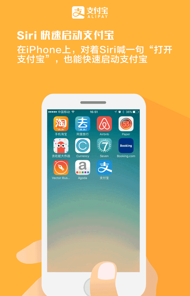 在ipri上,对着siri喊一句“打开支付宝”,也能快速启动“支付宝。”