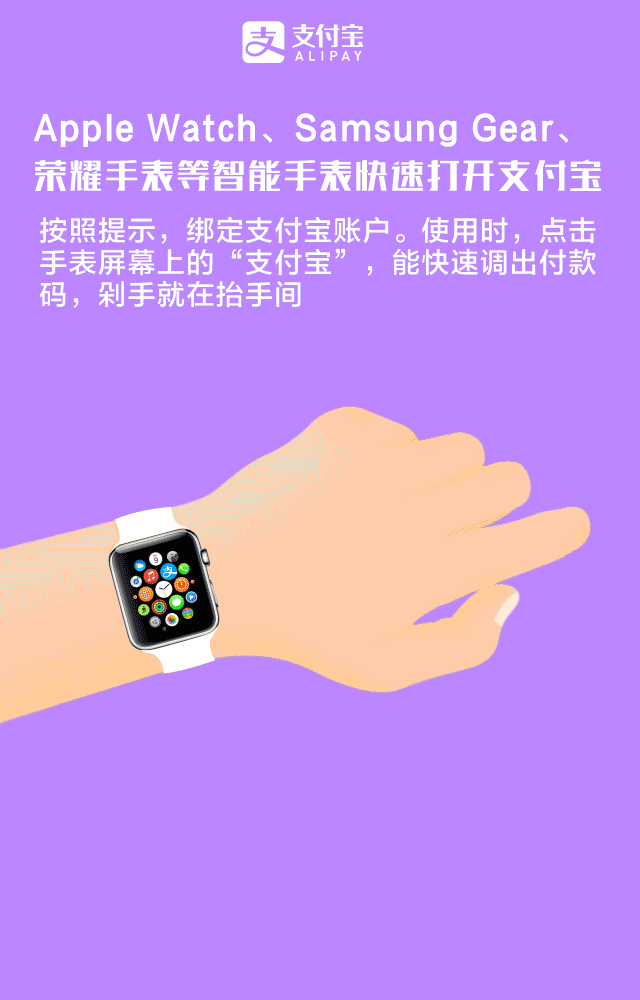 Apple Watch,samsung Gear,荣耀手表等智能手表快速打开“支付宝。”