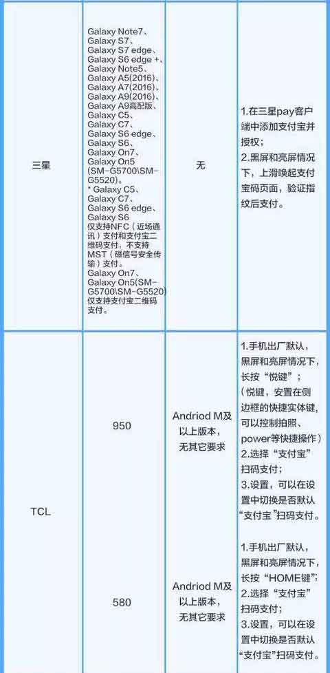 秒付码的出现,更是将“支付宝”快捷支付的时间,缩短到了极致,下面是支持"支付宝”扫码支付手机品牌及型号。