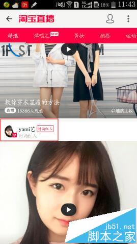 2、进去之后找到你想要看回放的淘宝主播,点她的名字: