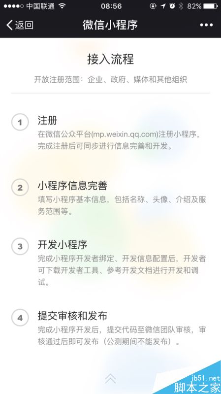 据微信团队的介绍,开放注册范围为企业、政府、媒体及其他组织。注册方式为,登陆微信公众平台注册小程序,完成注册后可同步进行信息完善和开发。填写小程序的基本信息包括名称、头像、介绍及服务范围等。
