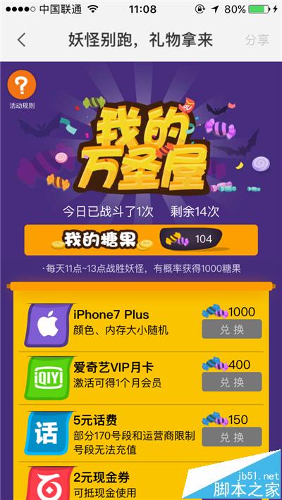 6、得到的糖果可以用来兑换很多东西,比如爱奇艺会员卡,比如iPhone 7,小伙伴们,快来参加吧。